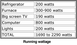 Some appliances use more power starting up than when they are running, so I calculated the starting wattage so if everything went on at once, I would be OK.
